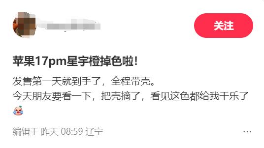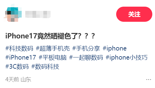 关于褪色原因,许多受影响的用户推测与紫外线有关。他们表示,在将手机短暂置于阳光下之后,便观察到了明显的褪色现象。部分用户甚至调侃称,只需将“星宇橙”版 iPhone 17 Pro 放在太阳下晒一会儿,就能免费获得一台独特的“玫瑰金”版手机。